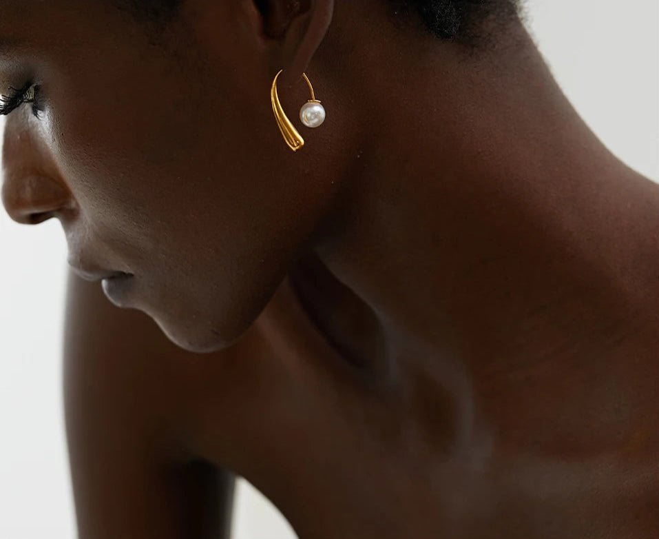Étoile-örhängena är för dig som vill bära något unikt. Med sin svepande form och svävande imitationspärla kombinerar de modern skulptur med romantisk elegans. Designen är både mjuk och kraftfull – precis som du.