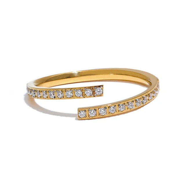 Yhpup Waterproof Luxury Shiny 3A Cubic Zirconia Exquisite Stainless Steel Chic Open Ring Adjustable Fashion Jewelry Korean Women